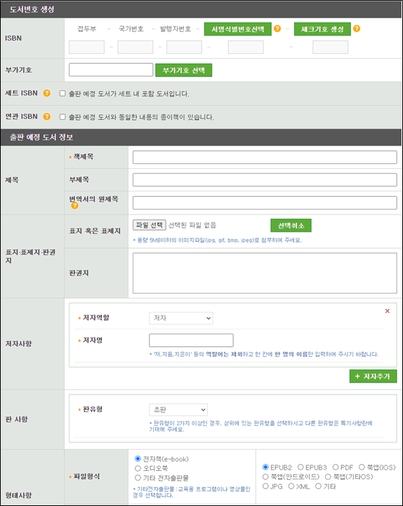 그리고 서점이나 기타 제휴사를 통해 책을 유통시키기 위해서는 ISBN 발급이 필수입니다.