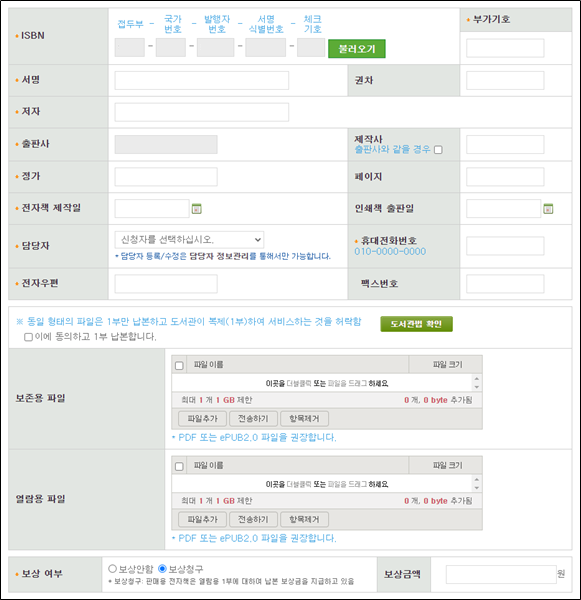 물론 개별도서/일반세트 및 종이책/전자책 모두 부여할 수 있는 신청서 종류도 있습니다.