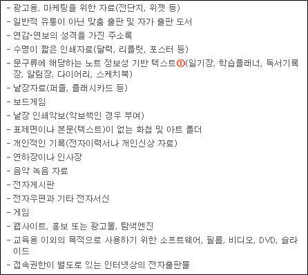 하지만 아래와 같은 경우는 납본 제외 대상입니다.