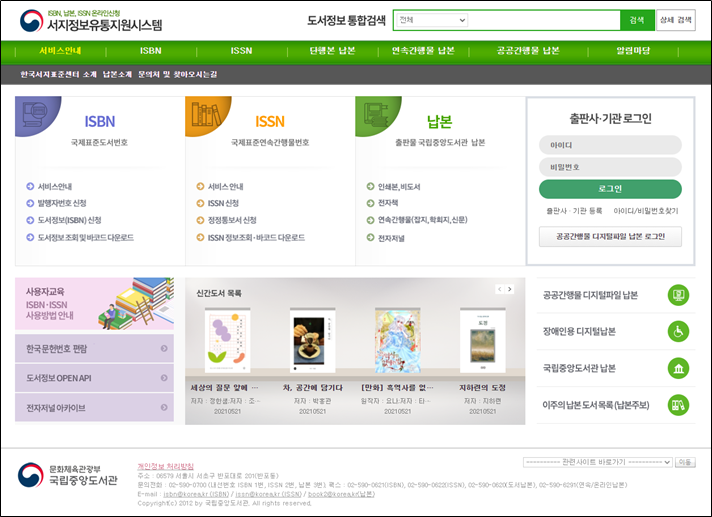 서지정보유통지원시스템: https://seoji.nl.go.kr:444/
