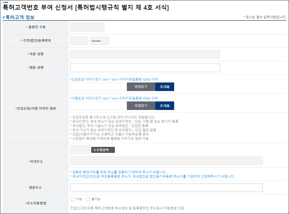3. 특허고객번호 부여 신청서 작성
