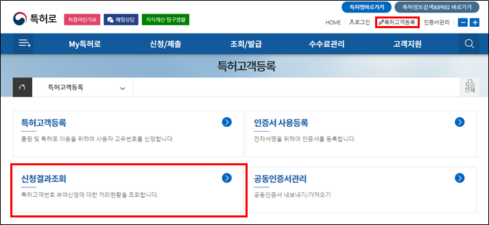5. 신청결과 조회 및 특허고객번호 통지서 확인