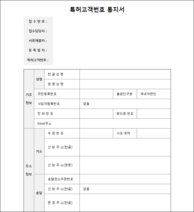 다음으로 특허고객번호 부여 신청서 페이지가 노출됩니다.